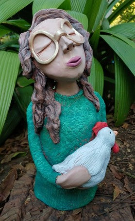 Pottery pop met hoender in haar hande